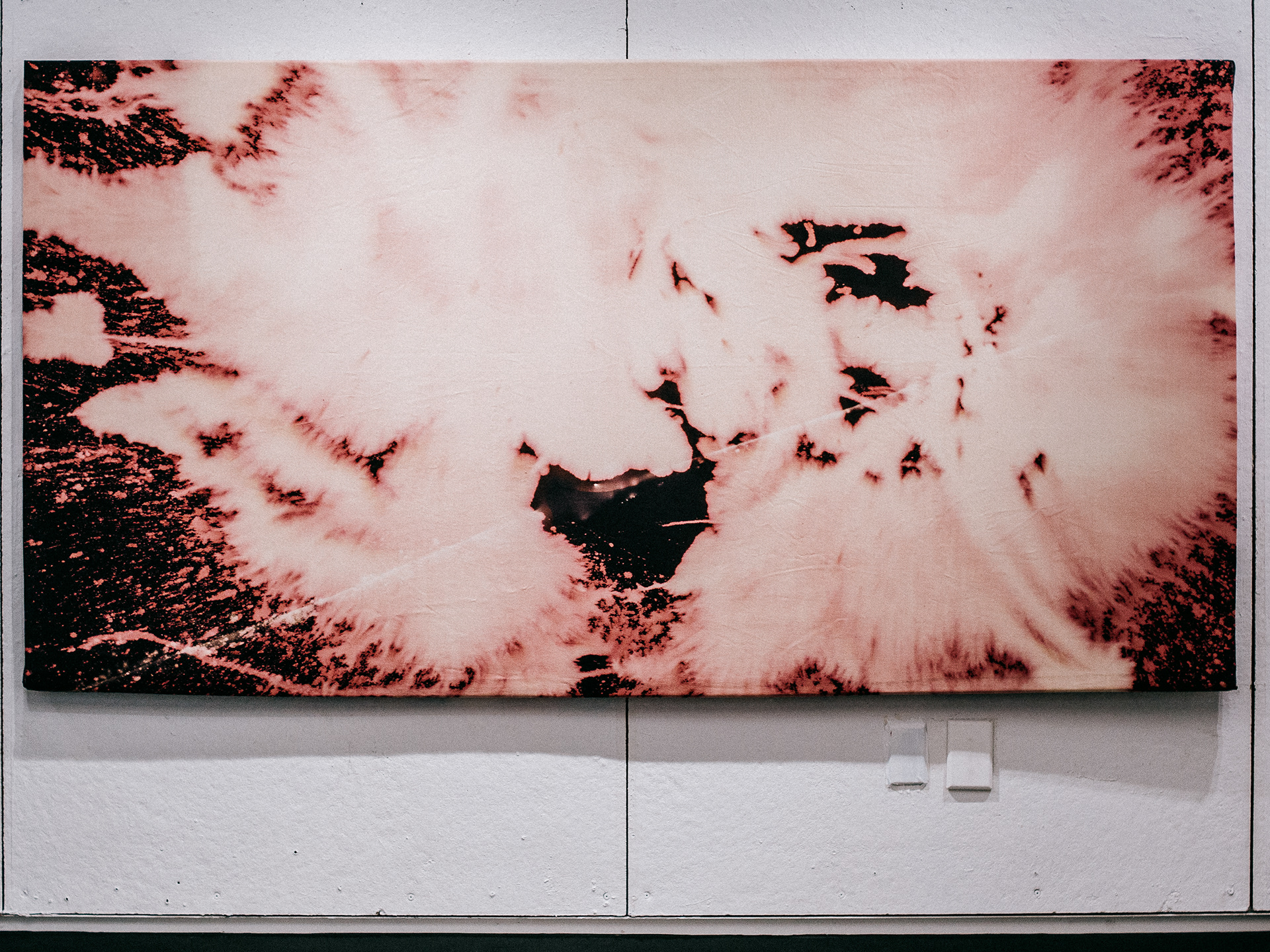 The project began as a performance during which I spat bleach onto a T-shirt, creating a wearable and commodifiable token to spark dialogue and trigger recollection of the performance. Through documentation, propaganda, and the artist's cult of personality, I interrogate how artists, often white cisgender men, succeed and establish heroism through mechanisms of discomfort, excitement, and simulated risk. The objects I create, ranging from photographs to large canvases and wearable pieces, challenge traditional notions of painting and art. Like cult propaganda, they offer incomplete representations, providing curated glimpses. I utilize bleach to create a subtractive form of painting akin to reductive charcoal drawing and photographic processes, and I additionally seek to question whether simulated risk and safety precautions are the logical end aesthetic to process art and abstract expressionist action painting.